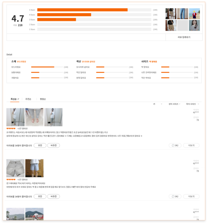 대표적인 리뷰 솔루션의 기능 지원 및